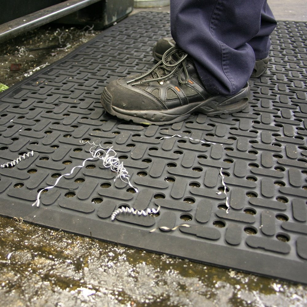 The K-Mat Rubber Workplace Mat is engineered to deliver comfort, safety, and durability in demanding environments like commercial kitchens, food manufacturing plants, and machine shops. Made from 100% nitrile rubber, this high-performance mat resists oils, fats, greases, and detergents without cracking or breaking down over time.