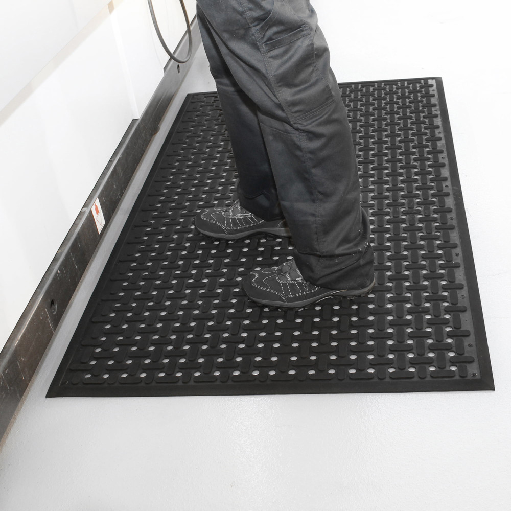 Designed for fatigue relief, the mat cushions feet and joints during long shifts, promoting better posture and comfort. Installation is simple, just lay it down, no adhesives needed. Easy to maintain, it can be cleaned with a pressure hose or machine-washed in commercial settings.