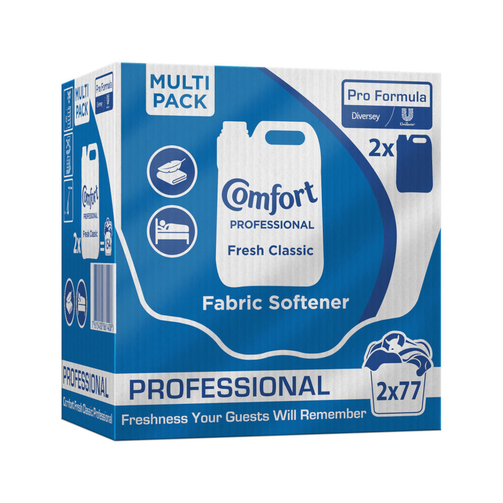 Deliver exceptional softness, freshness, and care with Comfort Professional Fabric Conditioner. Designed for professional laundry environments, this concentrated fabric conditioner infuses every wash with Comfort’s signature Fresh Classic scent, leaving garments irresistibly soft and delicately fragranced.