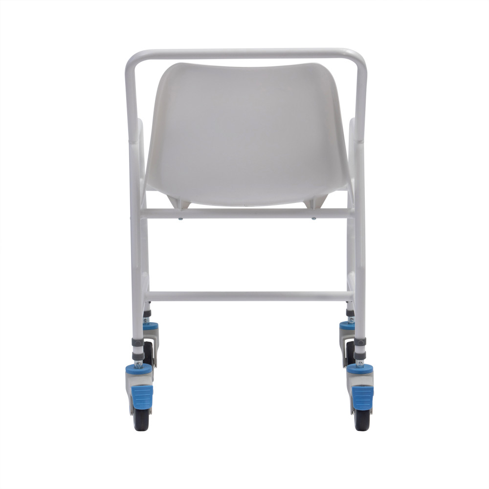 Ideal for both home and clinical use, this mobile shower chair offers a safe, hygienic, and practical solution for individuals requiring mobility support in wet areas.